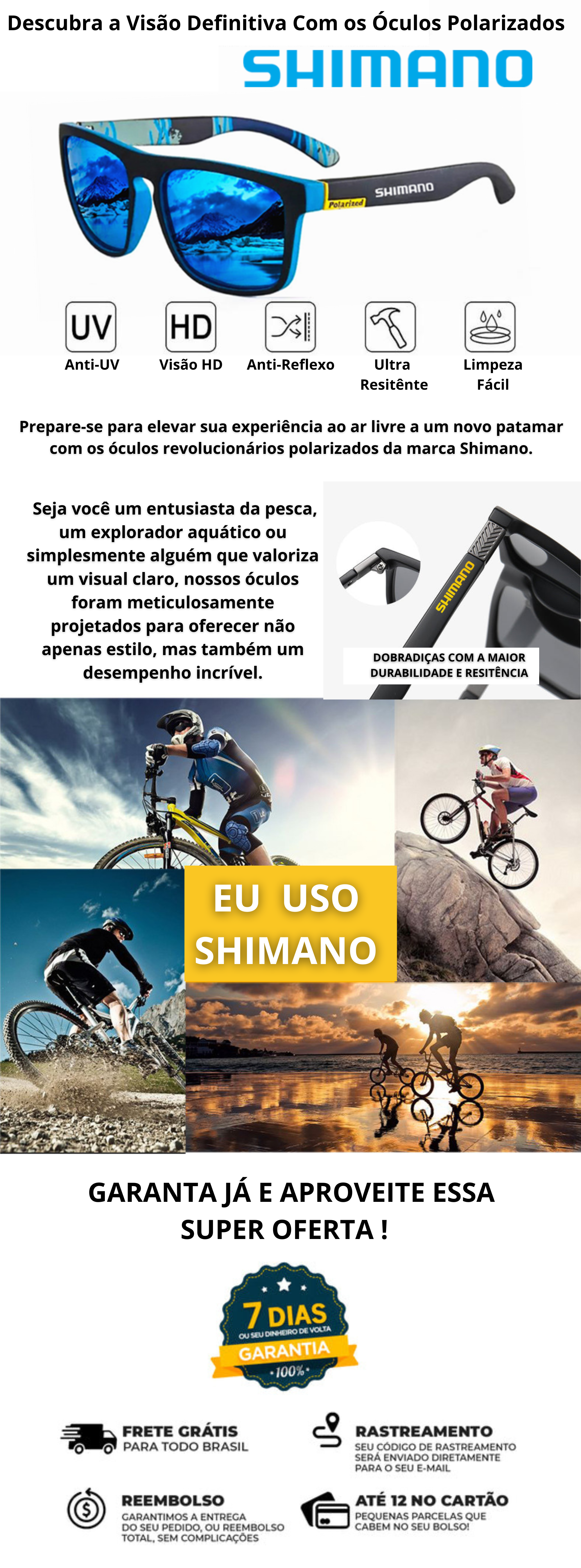 Óculos de sol polarizados Shimano (GRÁTIS CAIXA E PANO DE LIMPEZA ) proteção UV400 para homens e mulheres ao ar livre